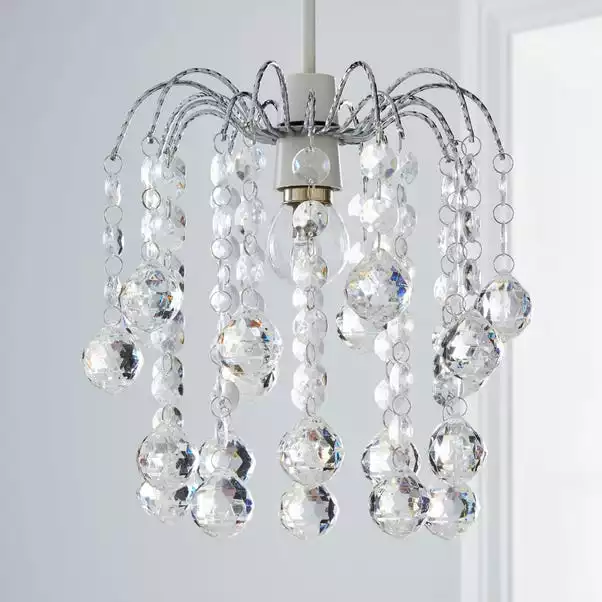 Featuring cascading crystal effect gems, this clear hanging pendant light fitting is available to purchase online.