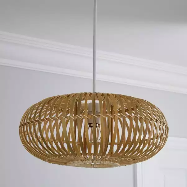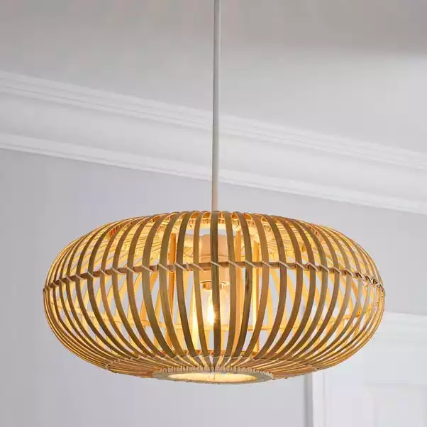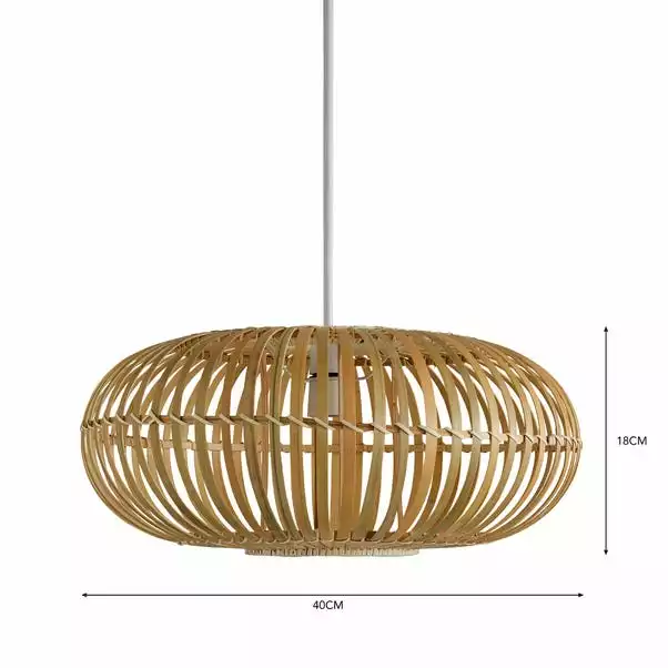 Perfect for adding a warm, natural feel to your home, the Abrielle pendant features a gorgeous contemporary design. This pendant is beautifully crafted from bamboo and features woven detailing and a stunning natural finish.