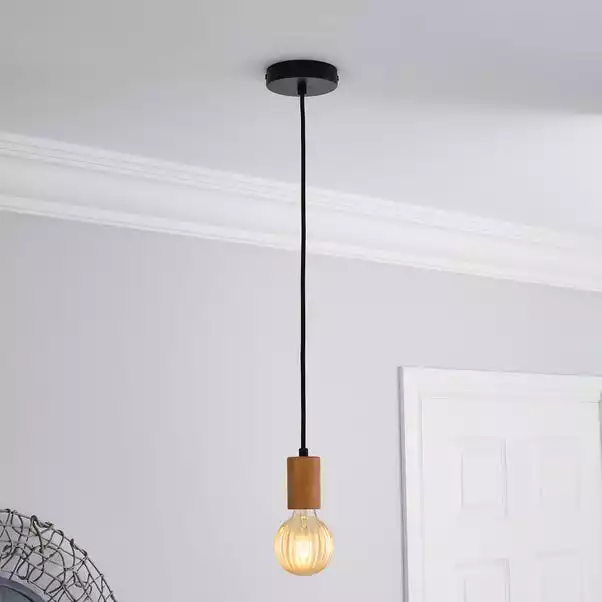 With a natural wood finish lamp holder, this stunning piece will add a touch of style to any room of the house with its modern colourway. With an adjustable height, this piece is dimmable compatible and can be mixed and matched with our decorative bulb range to help coordinate your home. Please note shades and pendants cannot be fixed to this fitting.