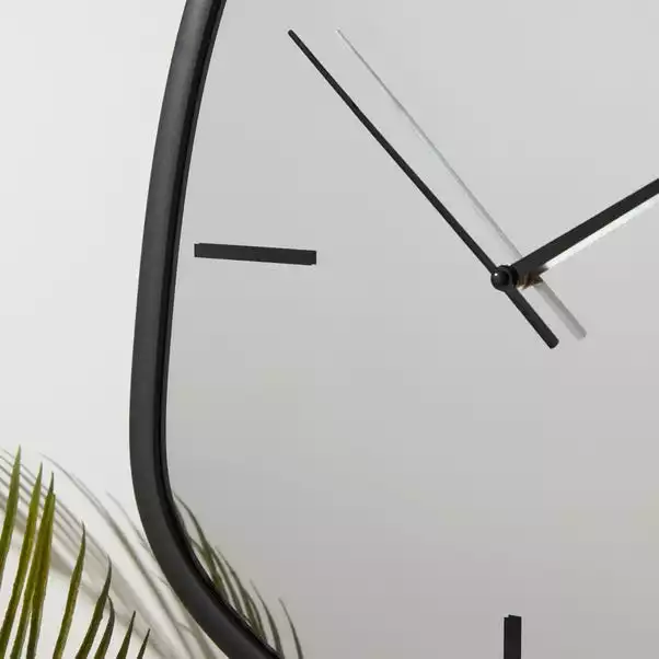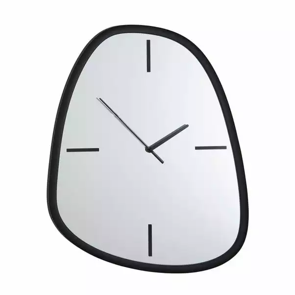 Add a luxurious finishing touch to your wall with this black framed Pebble wall clock. Designed on a silver mirror, this pebble clock features simple styled hands with a numeral bar in a contrasting black colourway. This stylish pebble clock will look beautiful with a range of home decors.