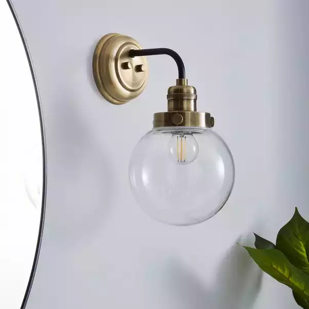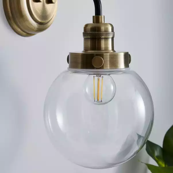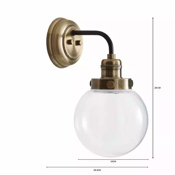This industrial style wall light is the ideal piece for any room of the house, including bathrooms, with its modern colourway and antique brass detailing that will complement an array of home decors. The dimmable compatibility makes this both an attractive and practical piece, perfect for mood lighting. Matching family items are also available, to help co-ordinate your home.