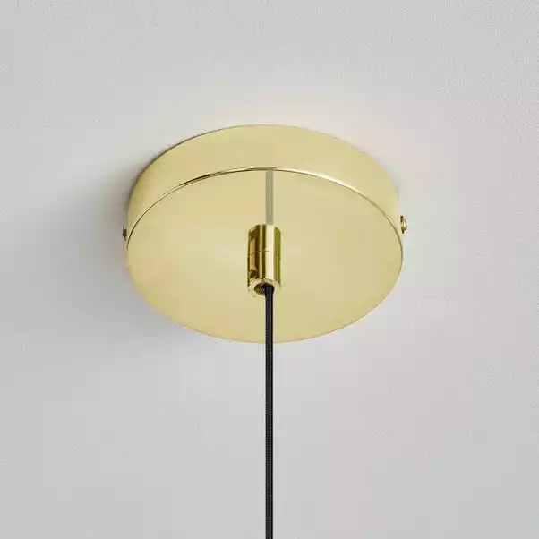 Bring a contemporary feel to your home with this modern Emzo Ceiling Fitting. Crafted with a stunning black painted shade, finished with a striking gold metal cage and a gold ceiling fitting. This stunning ceiling fitting is complete with a height adjustable black cable. This piece is dimmable with a suitable bulb and light switch. Matching Emzo family items are available to help coordinate your décor.