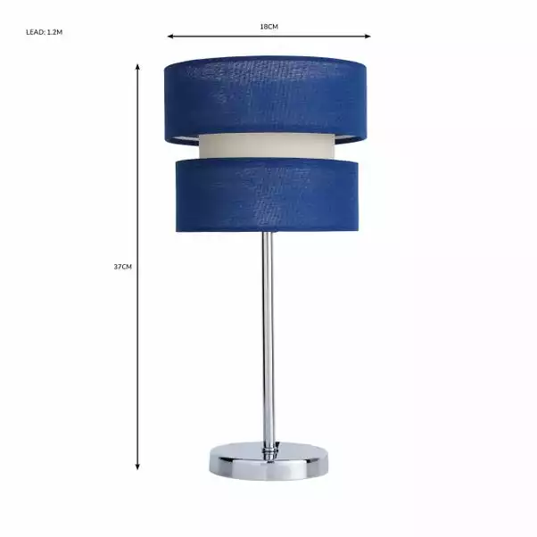 Designed with a soft cotton fabric shade with a cut out structure in a navy blue hue, this Frea table lamp is complete with a slender chrome stem and circular base. With a collapsible style and little assembly, you’ll have the light shade of your dreams in no time
