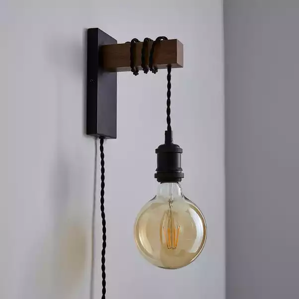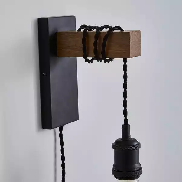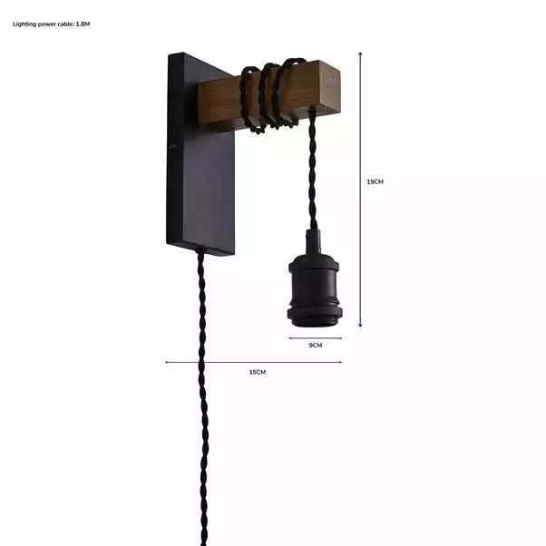 This easy to fit, plug-in wall light has a rustic pine finish and modern colourway that will complement an array of home decors. With a 1.8m cable from the plug to the light, this wall light is the perfect piece to accompany any room of the house. Matching family items are also available.