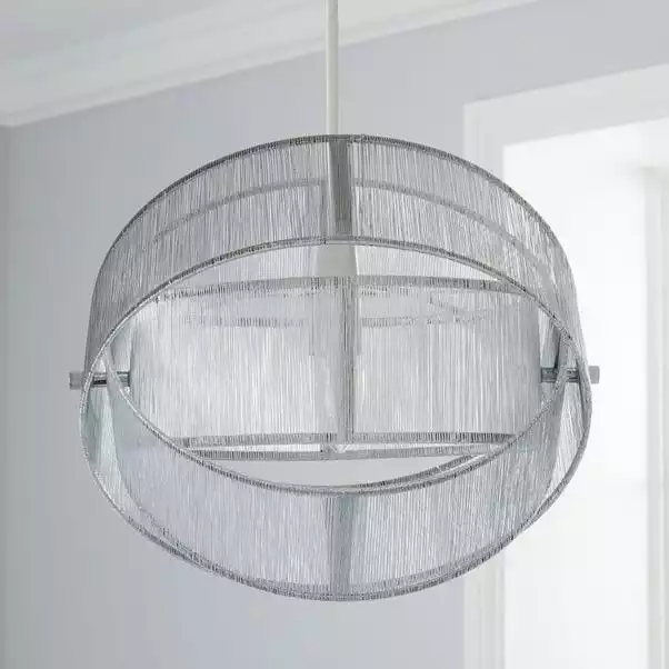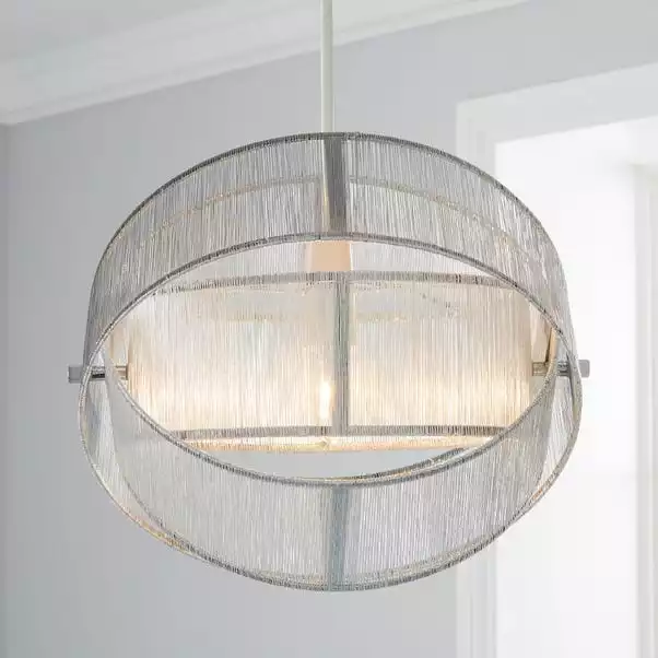 This stunning and eye-catching piece would be a perfect addition to an array of rooms. Featuring a string bead finish with a silver effect detail, this pendant is designed in a unique round shape and constructed from a durable steel material.