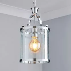 Featuring a gorgeous georgian lantern design for a classic look this lantern fitting has clear antique style glass and is suspended from a chain for decoration making it an ideal fitting for any home.