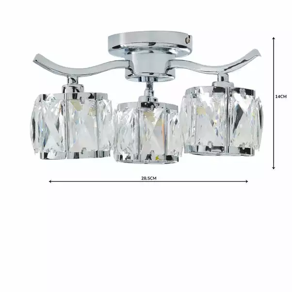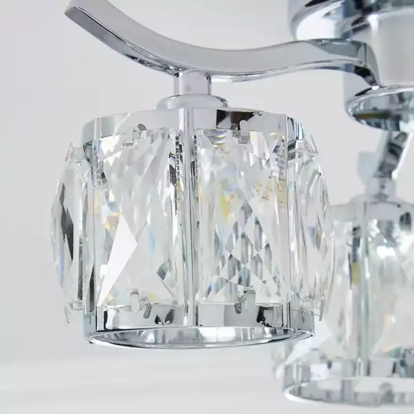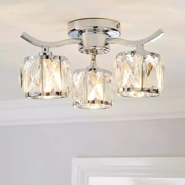 The Kleio semi flush dimmable light fitting boasts a very classy design, featuring 3 curved sculpted arms with a beautiful glass jewel beads design.