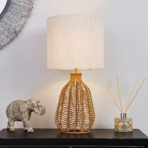 With its gorgeous global style, the Kylo Tale lamp features a delicate natural woven string base to create a stunning finish. The lamp base is perfectly partnered with a faux linen shade and comes complete with a matching 120cm cream fabric flex cable with an inline switch for ease of use.
