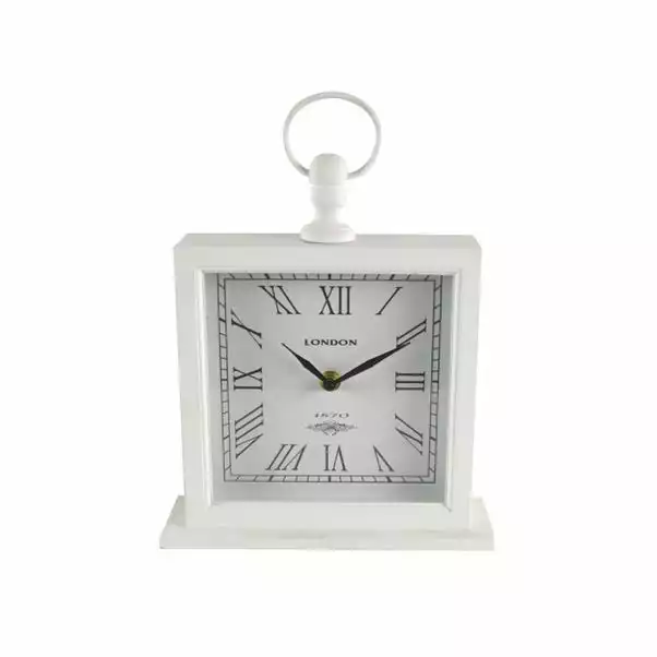 Displaying traditional Roman numerals, this large square shaped mantel clock is finished in a classic white, timeless shade.