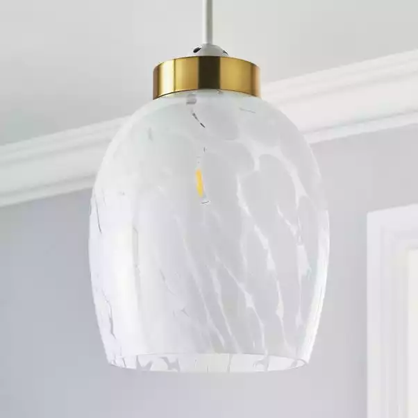 Part of the Luxe Traveller trend, this stylish Lilo Easy Fit Pendant features a luxe design with a gold effect plate and confetti effect glass shade, perfect for adding a modern look to your home. This easy fit pendant is available in another colour, so its perfect for complementing an array of home decors styles. Matching family items are also available to help co-ordinate your home.