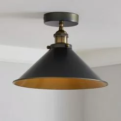 Introduce a contemporary element to your interior with the beautiful Logan Flush Ceiling Light, stylishly crafted with a dark nickel colourway and painted gold in the inner part of the shade for the best light output. A perfect way to add a modern and rustic touch to your décor.