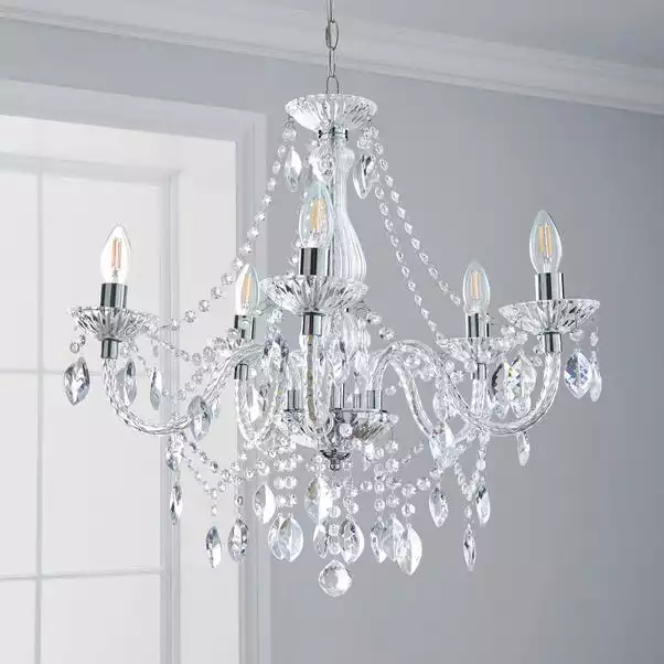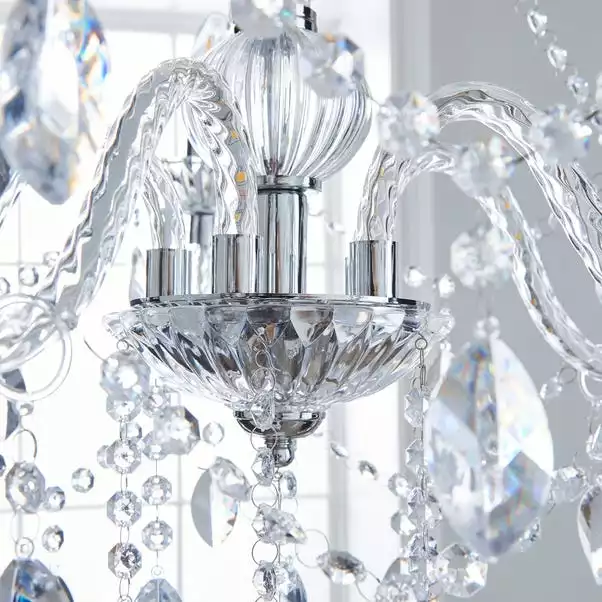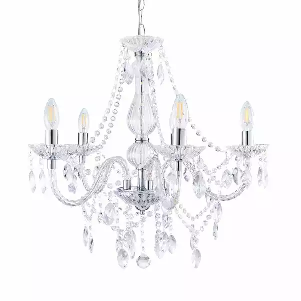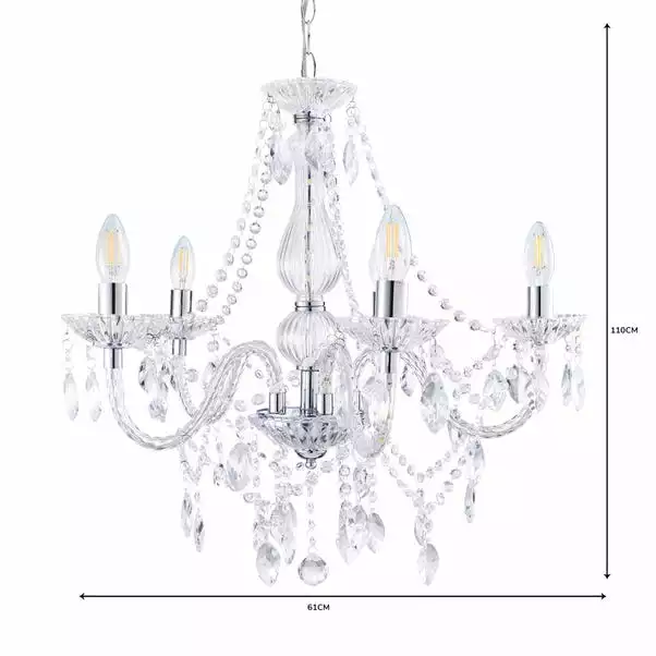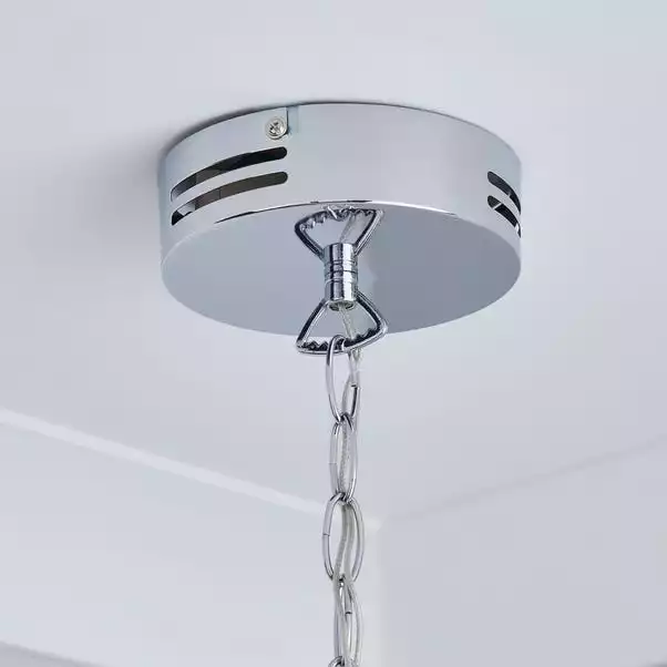 Complete with an integrated LED light element, this stunning ceiling fitting features a contemporary infinity design and chrome finish. The fitting still requires 5 x SES candle bulbs to operate.