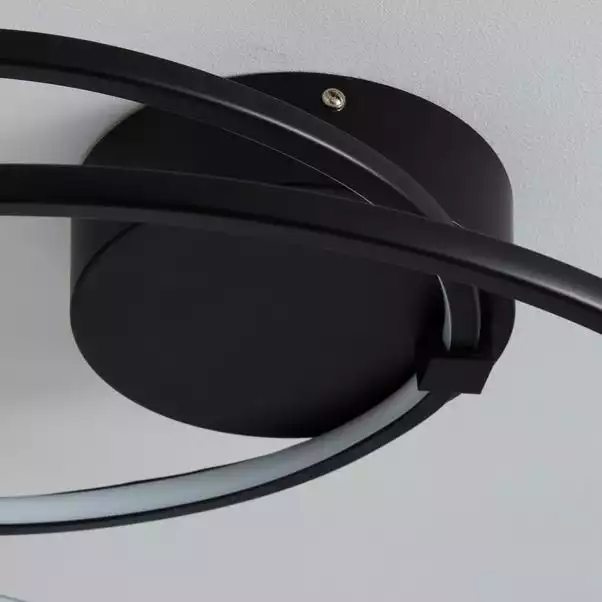 Complete with integrated LED lights, this stunning ceiling fitting features a modern swirl design in a matt black finish. Lighten up your home in a versatile and environmentally friendly way with LED lighting. These integrated LED lights are energy efficient and are compatible with a dimmer switch, allowing you to set the perfect ambience in your home.