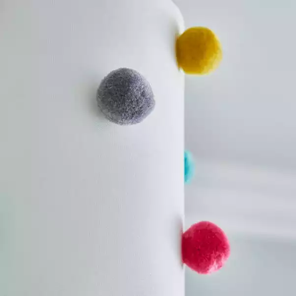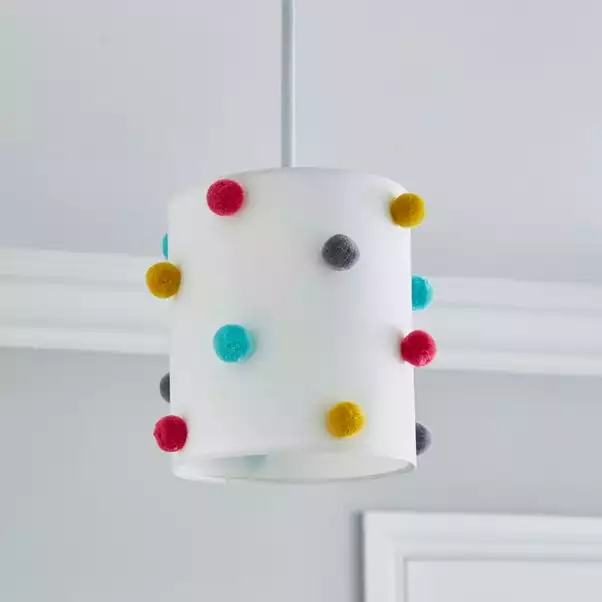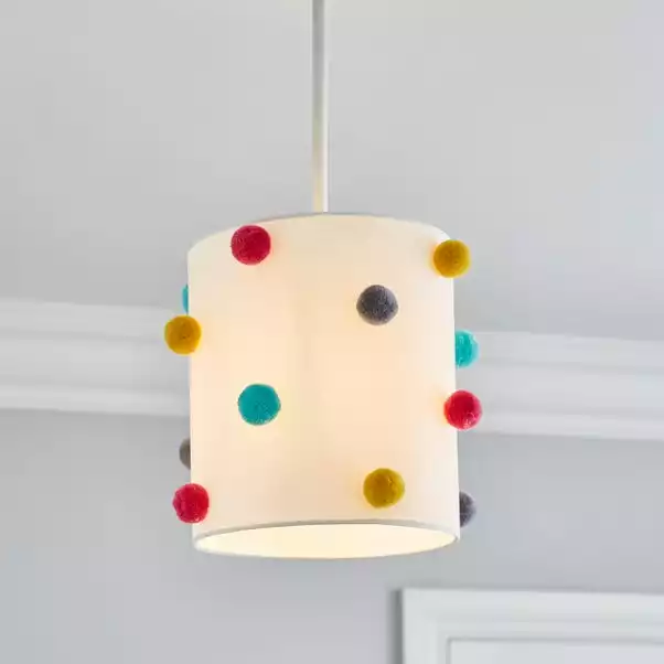 Offering a quick and easy way to bring a touch of fun, colourful style to your home. The multi colour pom pom shade features an easy-fit design compatible with standard ceiling fittings. Featuring a polycotton fabric shade, paired with multi coloured pom poms carefully placed around the shade. This simple and elegant shade is ideal for kids rooms.