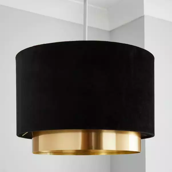This gorgeous shade in a beautiful black velvet colourway is both unique and glamorous, complete with a gold second tier. This shade will complement an array of home decors and is available in other colours, perfect for all your decorative needs.