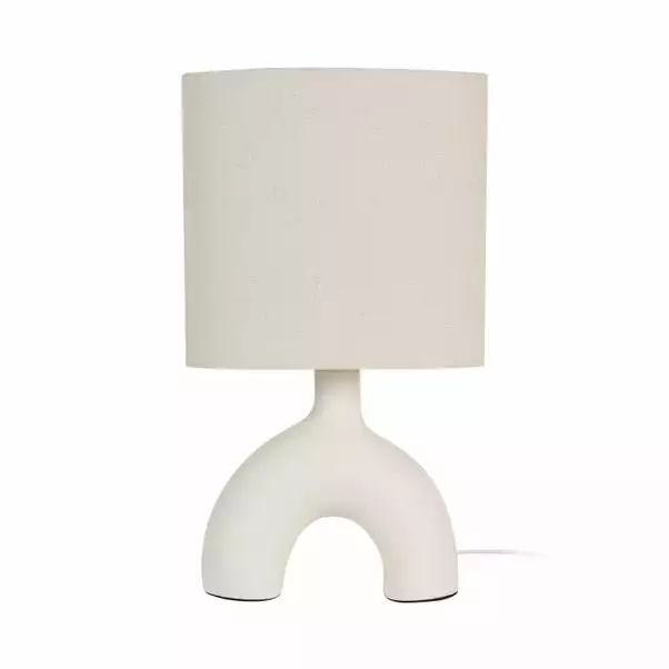 Modern and funky, our Noah Arc Table Lamp has been crafted with a faux linen shade in a natural colourway to suit any home interior decors. The Artizan design allows your home to look stylish and sleek with the textured ceramic base in an arc shape. Available in 2 sizes for any tabletop space.
