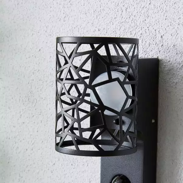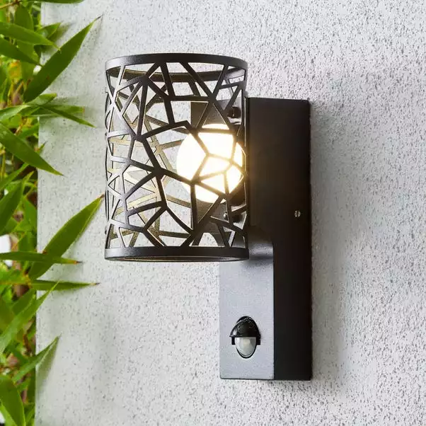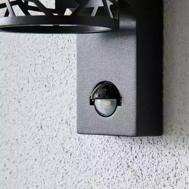 The Pandora PIR Wall Light features an etched metal shade with a stunning textured black paint finish, with an integrated LED bulb. This light also has a built in sensor and will be sure to add a stylish look to your outdoor space.
