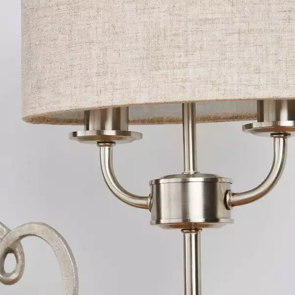With its decorative candlestick arms and stepped oval base, the chrome-finished Preston Oval table lamp offers a classic space-saving design, perfect for adding a sophisticated edge to your home décor. This lamp comes complete with a natural linen fabric shade and 150cm clear cable with an inline switch.