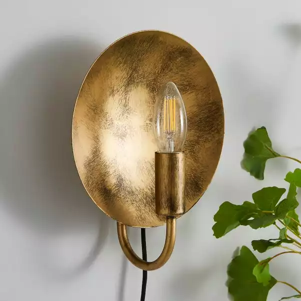 Boasting a chic, antique style design, the reflect wall light features a brushed gold finish and a shadeless design, making it ideal for statement bulbs. With no need for an electrician or any complicated installation, this easy fit wall light can be easily attached to the wall and plugged directly into a socket, featuring a handy in line swtich making it perfect for your bedside or home office space.