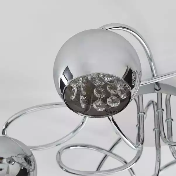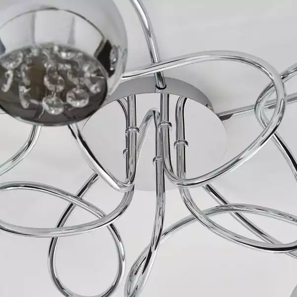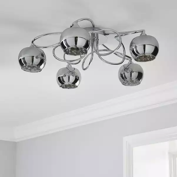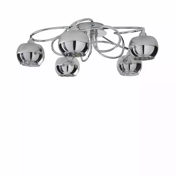 Featuring five smoked finish glass bauble shades designed with delicate clear glass droplets, the Seychelles ceiling fitting would make a glamorous addition to any room. This beautifuly crafted fitting features a beautiful woven arm frame with a sleek chrome effect finish.