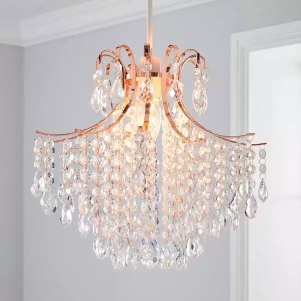 This stunning chandelier pendant will add a touch of glamour to your room. With a copper finish, this light is made from durable steel and acrylic string beads.
