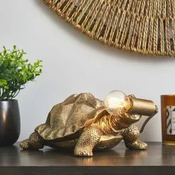 Perfect for the tortoise lovers! This unique table lamp will instantly add personality to your room. Beautifully made from plated resin with a detailed and textured gold finish. This piece will make the perfect decorative ornament whilst brightening up your space!