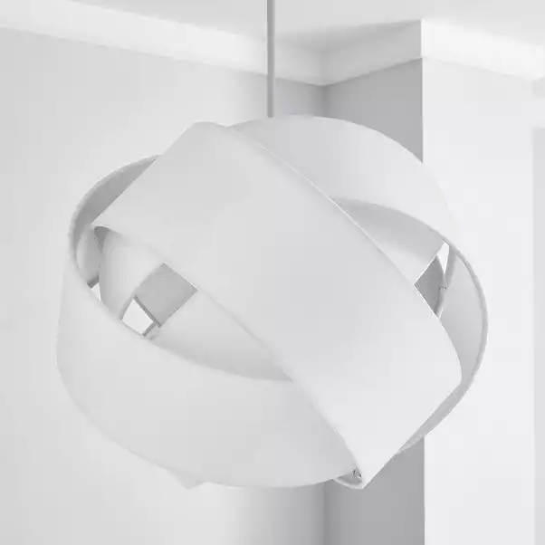 Crafted with interlocking rings, the Elements Harley shade is finished in a faux linen fabric in a fresh white colourway. Perfect for adding a contemporary touch to any space.