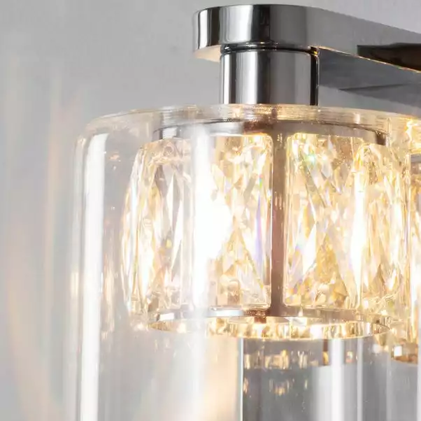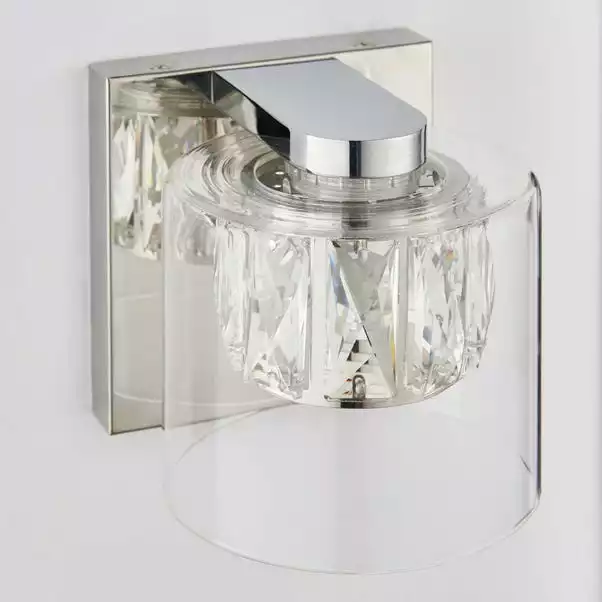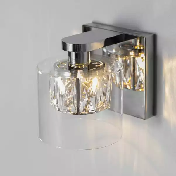Introduce a stylish element to your home with the Vogue Armoury Wall Light, crafted with high quality crystals and complete with a beautiful enclosed clear glass diffuser. This wall light will make a statement piece in your home and complement an array of home decors. The dimmable compatible piece also has matching family items, making it easy to co-ordinate your home.