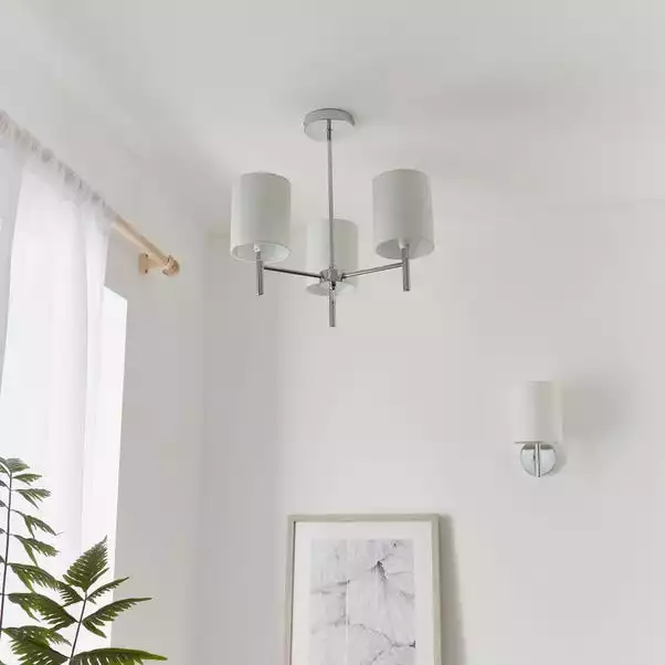 Adorned with 3 stunning off-white faux silk shades that perfectly complement the stylish chrome finish, the Dewey 3 light ceiling fitting would make a trendy addition to your home. This light fitting is suitable for use with dimmer switches and LED bulbs, with matching items and other colour options available.