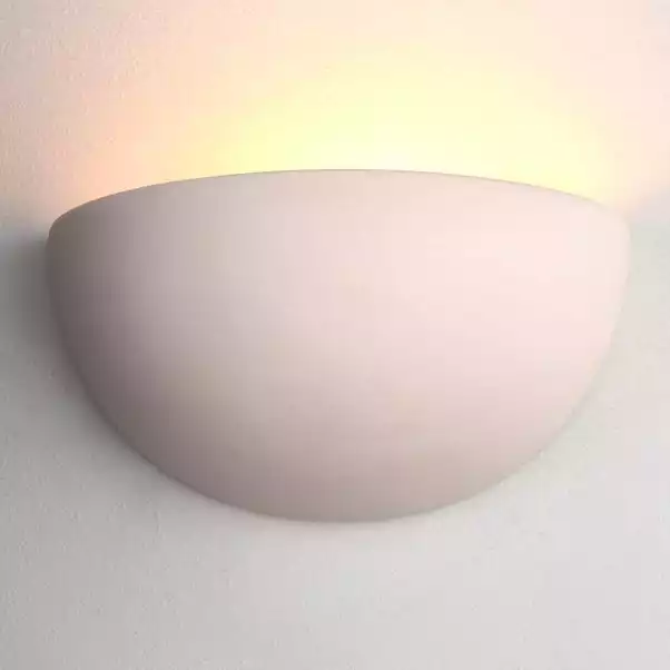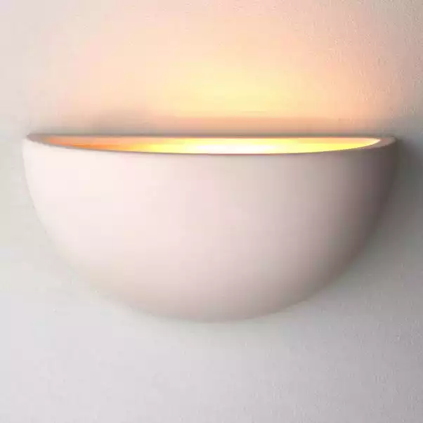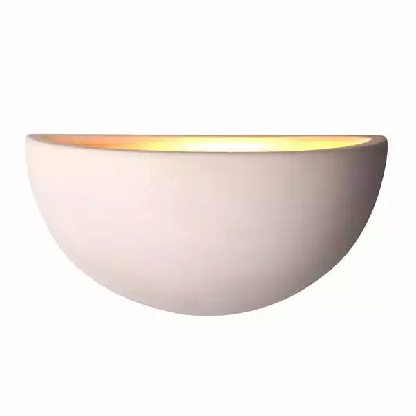 The Erwin wall light features a stunning ceramic half moon design, perfect for walls where uplighting is required. Its clean, unglazed finish means it can be painted to match the wall colour making it suitable for a wide range of spaces and decor styles.