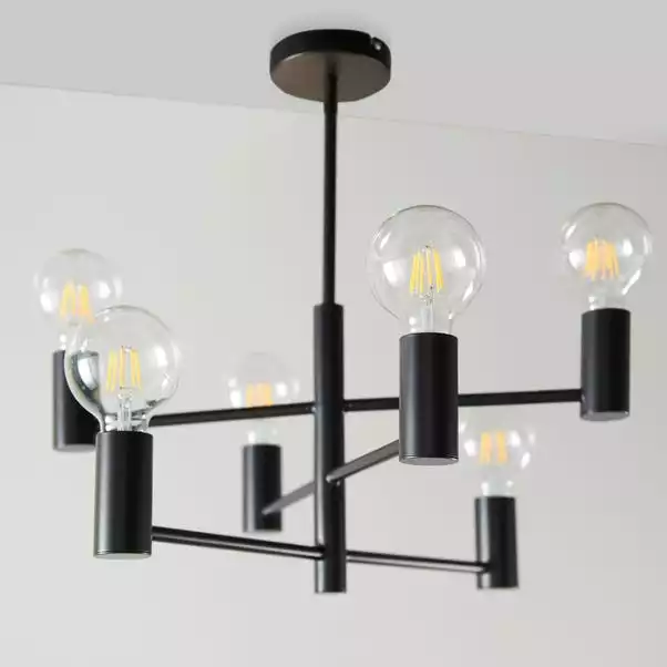 Get a designer look with the stylish Forsan 6 light ceiling fitting, finished in a smart matt black finish for a modern look. This minimalist chandelier is perfect when paired with LED filament bulbs for that essential, on-trend look.